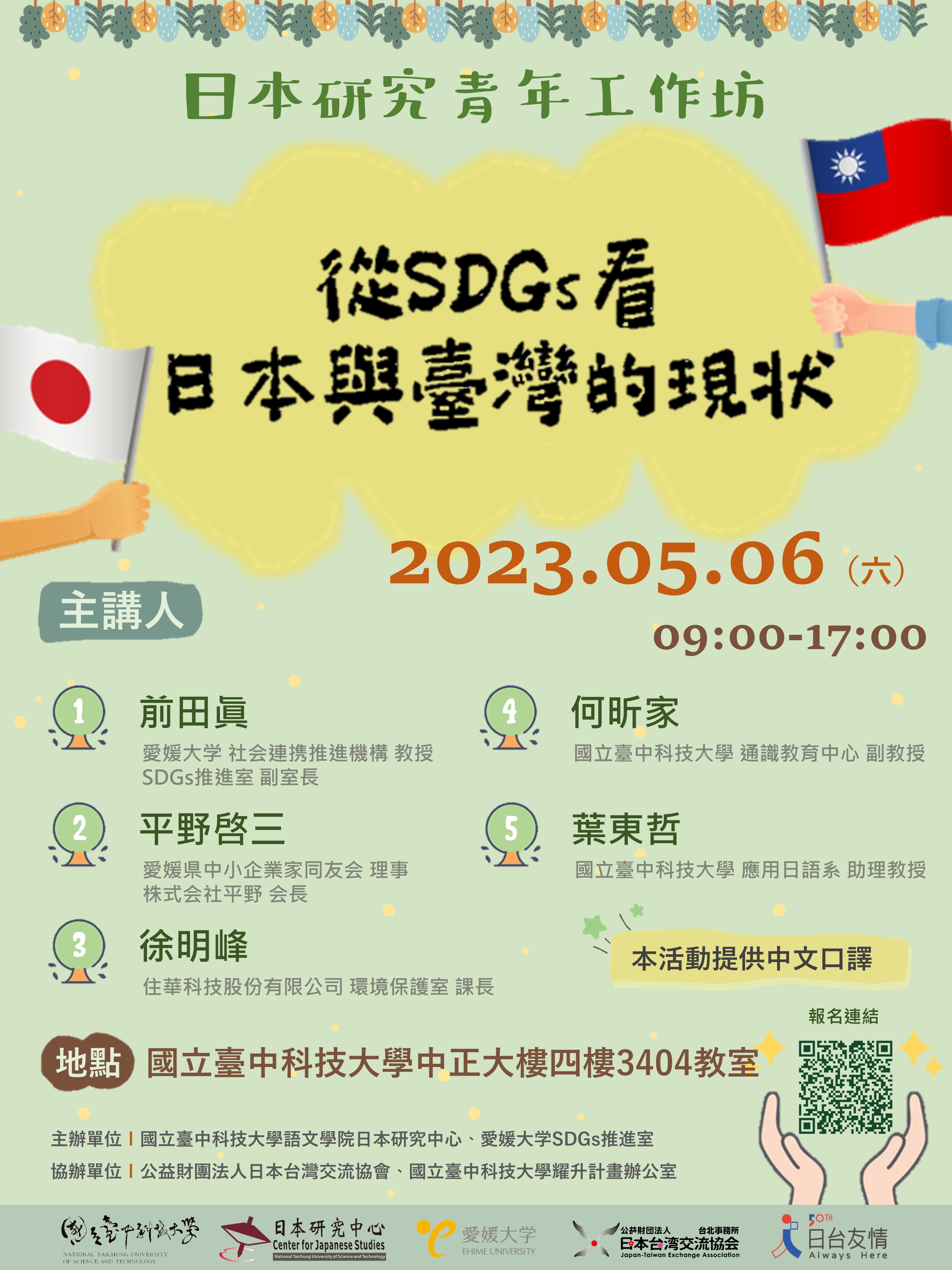 五、本活動提供中文口譯,竭誠歡迎對日本研究有興趣、熱忱之同學參加。將發給參加證明予全程參加者,其它資訊請參閱報名網站。