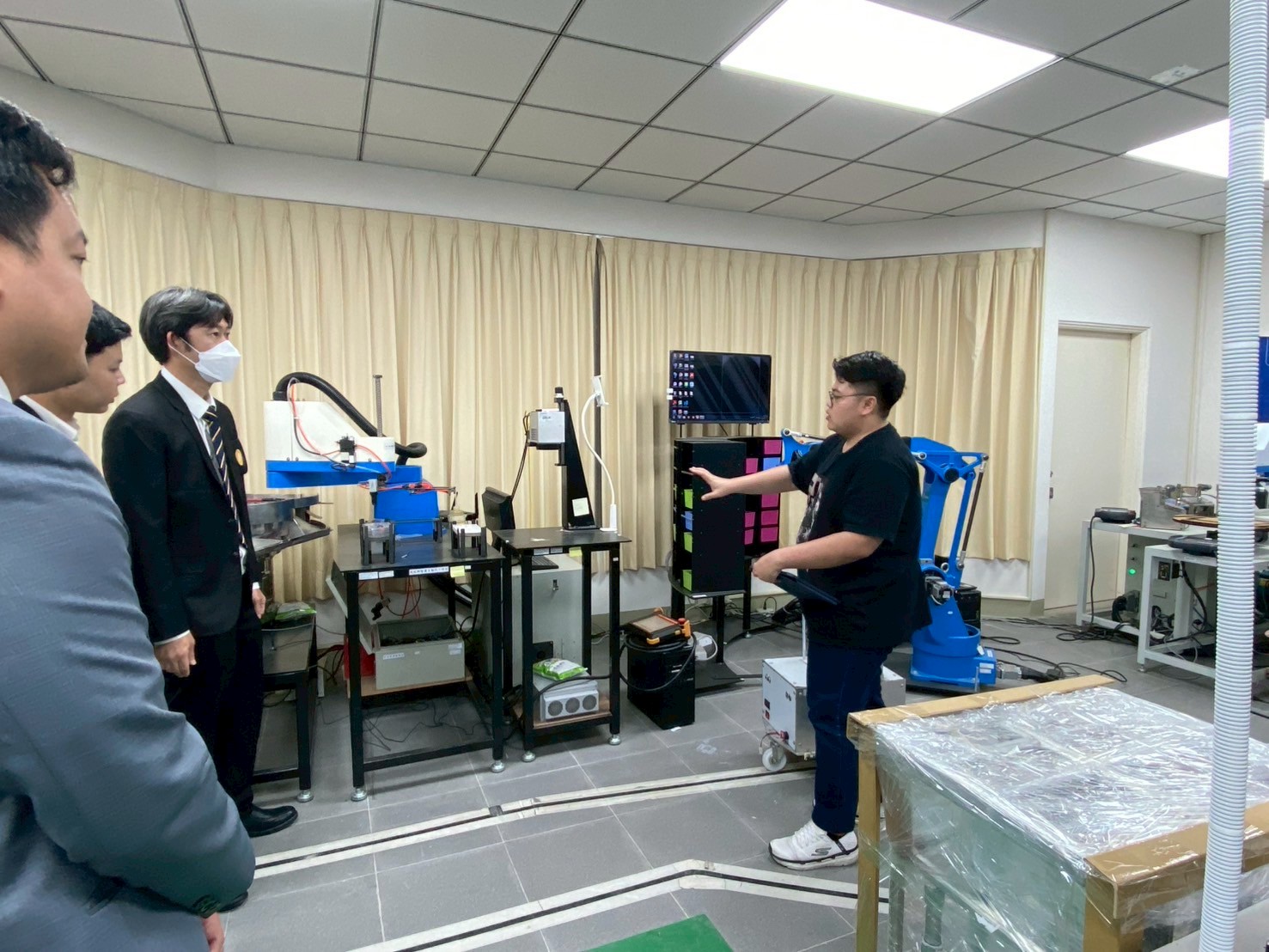 In the afternoon, the BUU delegation continued their visit to the Research Center for Intelligent Machinery and Smart Manufacturing, where they were warmly received by Senior Consultant Dr. Bing-Chi Jan and Dr. Chi-Chang Tsai. The hosts provided a comprehensive introduction to the center’s research and practical applications in the field of smart manufacturing, paving the way for future academic and technical collaboration between the two institutions.